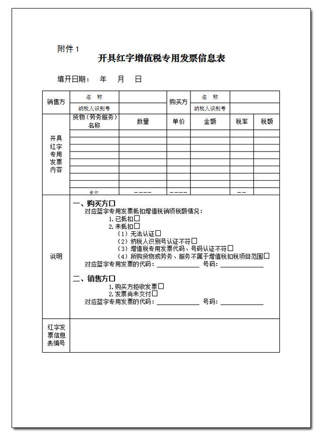 銷售方開具專用發(fā)票尚未交付購買方,以及購買方未用于申報(bào)抵扣并將發(fā)票聯(lián)及抵扣聯(lián)退回的,銷售方可在新系統(tǒng)中填開并上傳《信息表》。填開時(shí)應(yīng)填寫對(duì)應(yīng)藍(lán)字發(fā)票信息。
