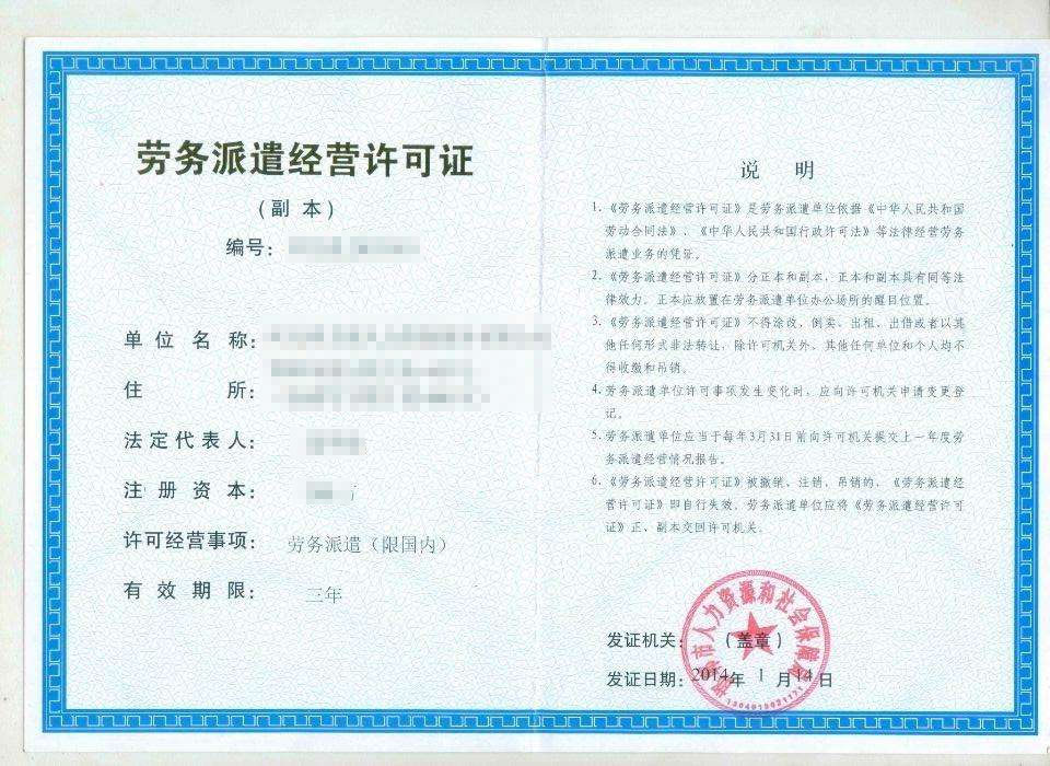 勞務(wù)派遣經(jīng)營(yíng)許可證需要在當(dāng)?shù)厝肆Y源和社會(huì)保障局申請(qǐng)行政許可,在滿(mǎn)足條件通過(guò)審核之后下發(fā)《勞務(wù)派遣經(jīng)營(yíng)許可證》,有效期為3年。依據(jù)我國(guó)法律的相關(guān)規(guī)定,具體的辦理流程如下:
