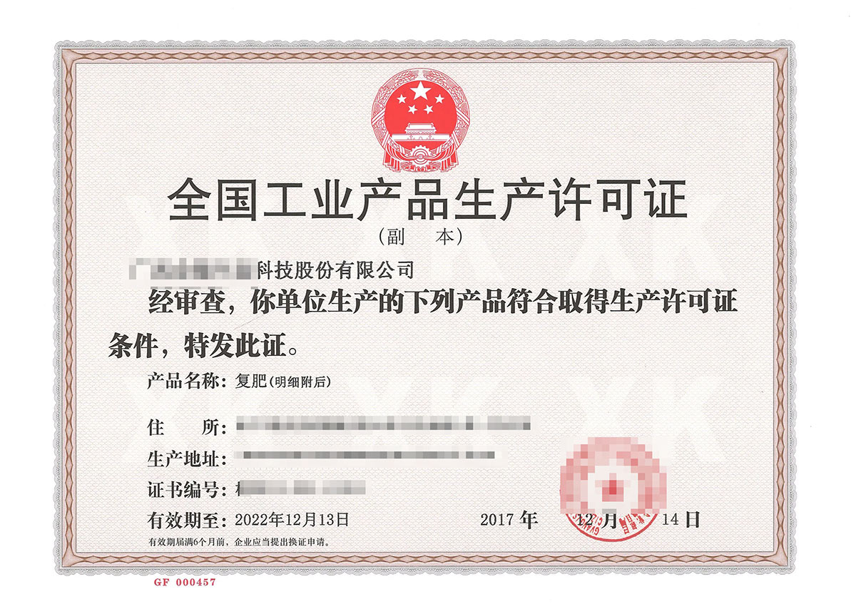 全國工業(yè)產(chǎn)品生產(chǎn)許可證核發(fā)(化肥)